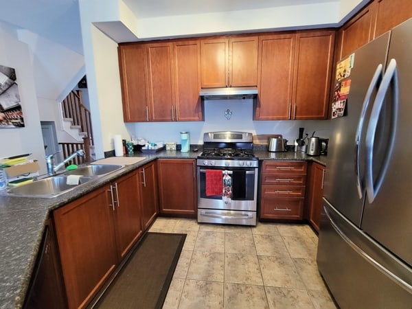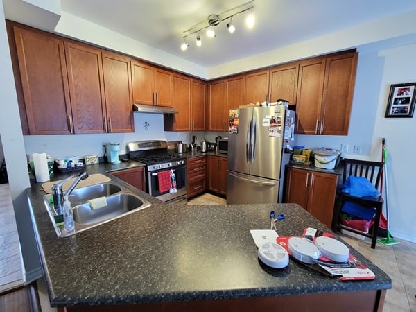 - Large kitchen w/stainless steel appliances and lots of cupboard space