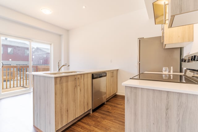 - Stainless steel kitchen appliances and dishwasher