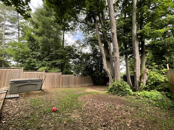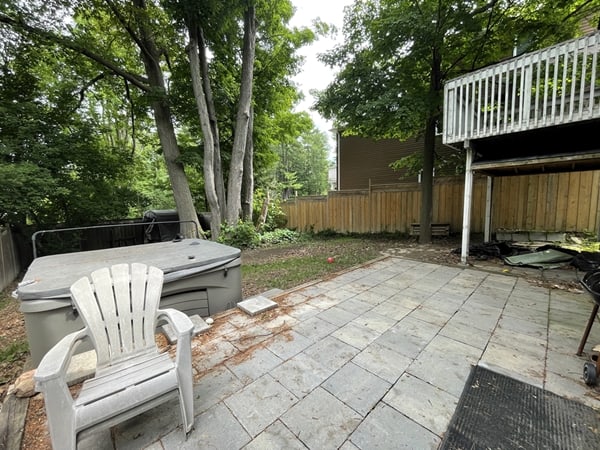 • Large, fenced backyard with patio, shed and hot tub.